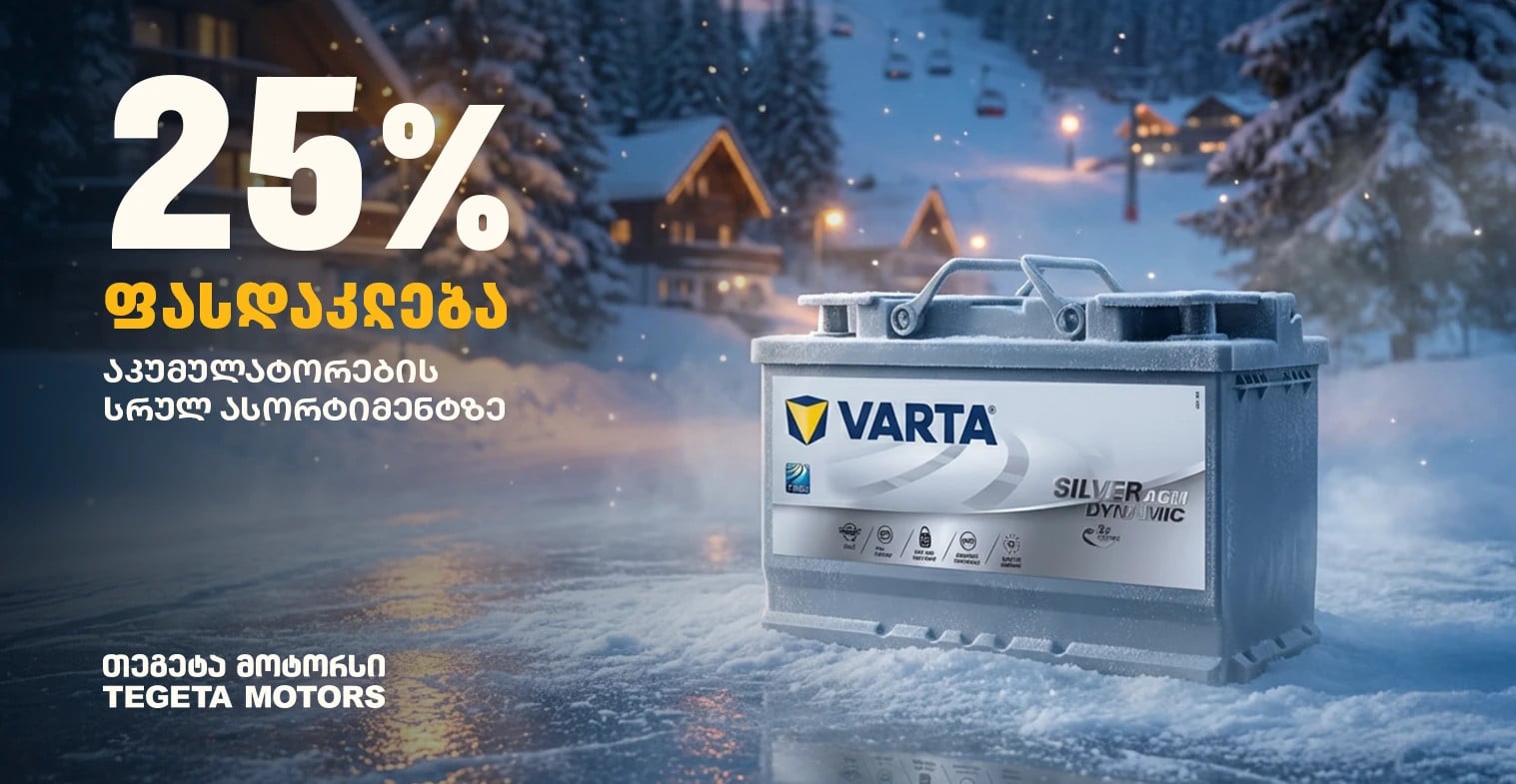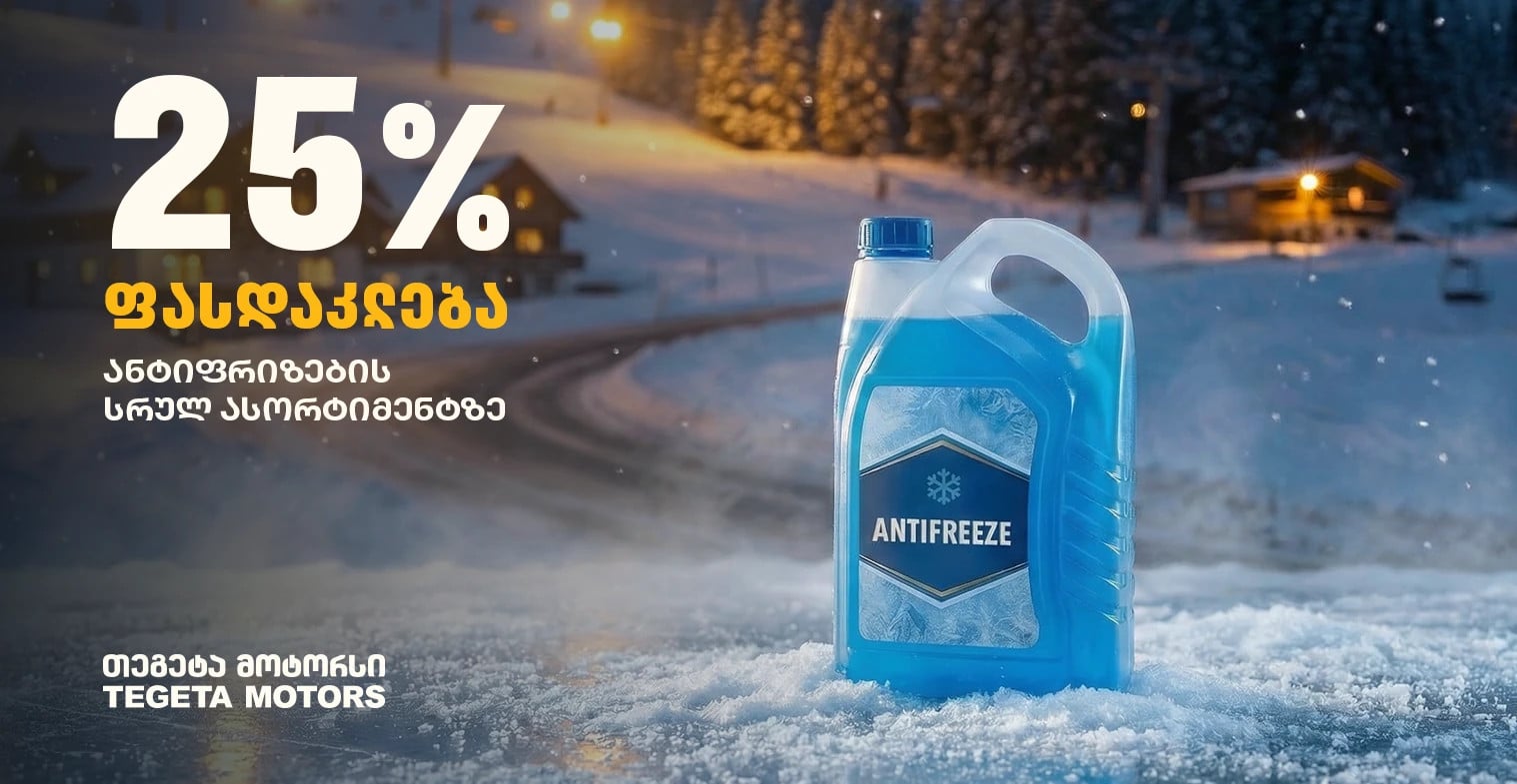 ზამთარში ავტომობილის ტექნიკური მდგომარეობა განსაკუთრებულ მნიშვნელობას იძენს. დაბალი ტემპერატურა, თოვლი და ყინული გზაზე რისკებს ზრდის, ამიტომ აუცილებელია დროული მომზადება იმისთვის, რომ ავტომობილით გადაადგილება ნებისმიერ ამინდში უსაფრთხო იყოს. მათ შორის, მნიშვნელოვანია აკუმულატორისა და ანტიფრიზის შემოწმება და, საჭიროების შემთხვევაში, შეცვლა. ზამთარი რომ უსაფრთხოდ „გადააგოროთ“, „თეგეტა მოტორსი“ დეკემბრის ბოლომდე აკუმულატორების სრულ ასორტიმენტსა და ანტიფრიზზე 25%-იანი ფასდაკლება მოქმედებს.